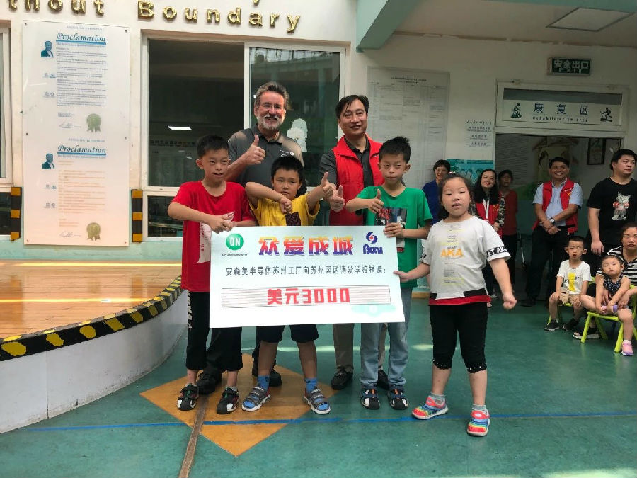 2019年是安森美半导体第三年来到苏州博爱学校,再此开启水中运动康复项目,在副总裁Keenan Evans的带领下,重返家园。今年,安森美半导体高管们共捐赠3000美元,资金用于购买水疗康复设备,完善水疗康复设施设备的升级。