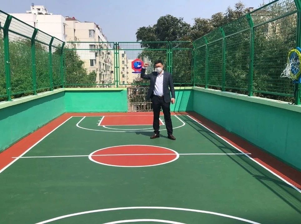 理事长郭阳先生为学校出资新建的篮球场