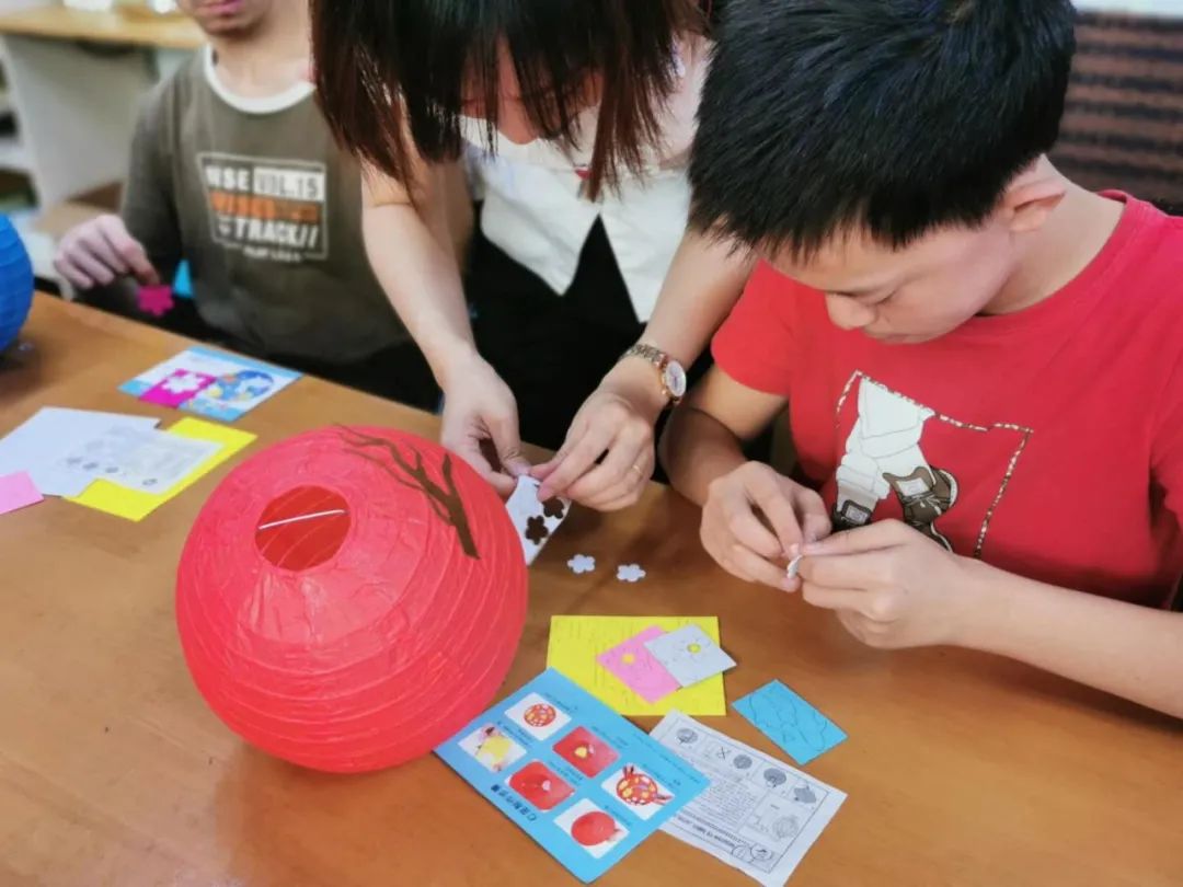 轨道交通的志愿者团队播放了轨道交通乘车宣传的安全片,让孩子理解如何安全的乘坐轨道交通,同时也介绍了车站工作人员身上所应承担的社会责任。在中秋佳节来临之际,志愿者们与孩子共同制作小灯笼,提前为孩子准备起了中秋礼物,志愿者们在教孩子灯笼制作的同时,也提升他们思考和动手能力,制作过程也拉进了彼此的距离,潜移默化提高了孩子社会交往能力。